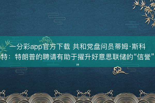一分彩app官方下载 共和党盘问员蒂姆·斯科特:特朗普的聘请有助于擢升好意思联储的“信誉”