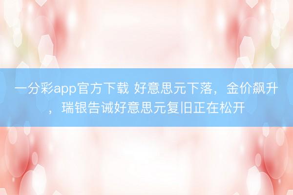 一分彩app官方下载 好意思元下落,金价飙升,瑞银告诫好意思元复旧正在松开