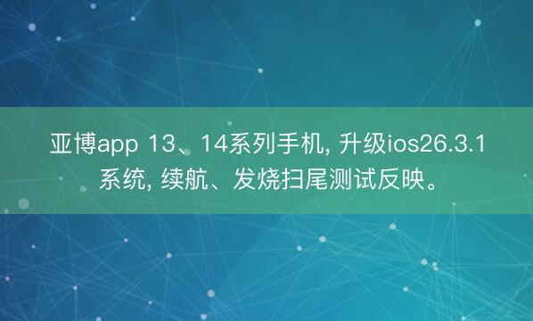 亚博app 13、14系列手机, 升级ios26.3.1系统, 续航、发烧扫尾测试反映。