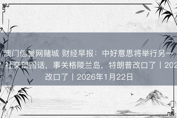 澳门信誉网赌城 财经早报:中好意思将举行另一轮贸易谈判?社交部回话,事关格陵兰岛,特朗普改口了丨2026年1月22日