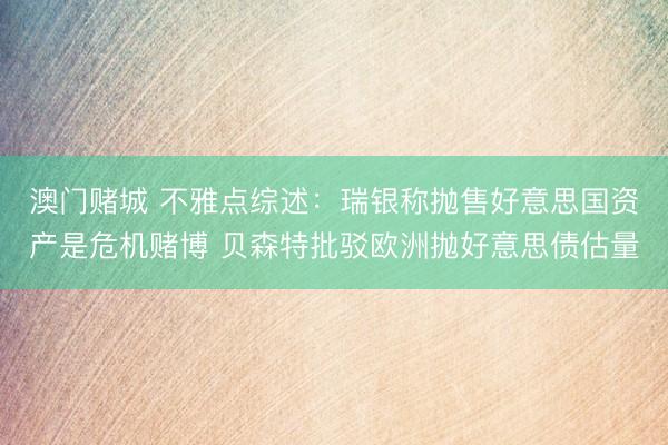 澳门赌城 不雅点综述:瑞银称抛售好意思国资产是危机赌博 贝森特批驳欧洲抛好意思债估量