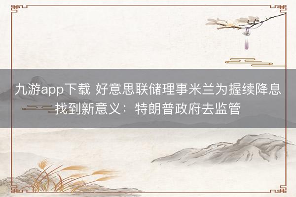 九游app下载 好意思联储理事米兰为握续降息找到新意义:特朗普政府去监管