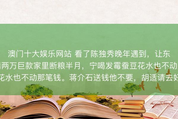 澳门十大娱乐网站 看了陈独秀晚年遇到,让东谈主脊背发凉。兜里揣两万巨款家里断粮半月,宁喝发霉蚕豆花水也不动那笔钱。蒋介石送钱他不要,胡适请去好意思国他不去