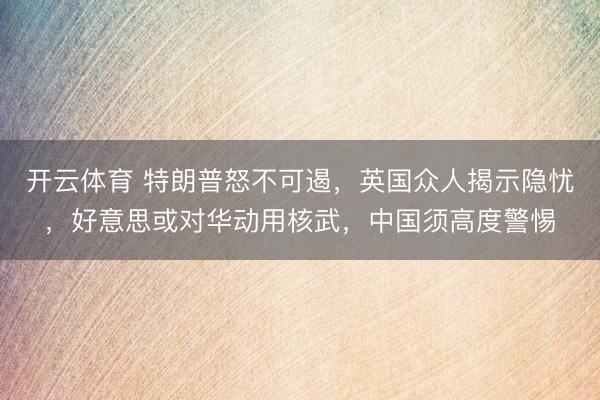 开云体育 特朗普怒不可遏,英国众人揭示隐忧,好意思或对华动用核武,中国须高度警惕
