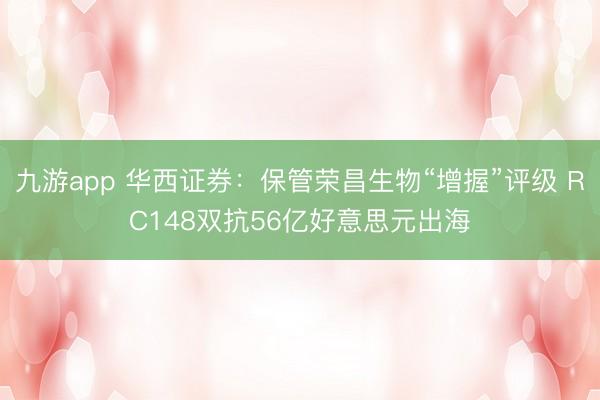 九游app 华西证券:保管荣昌生物“增握”评级 RC148双抗56亿好意思元出海