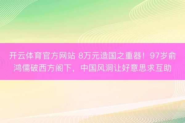 开云体育官方网站 8万元造国之重器!97岁俞鸿儒破西方阁下,中国风洞让好意思求互助
