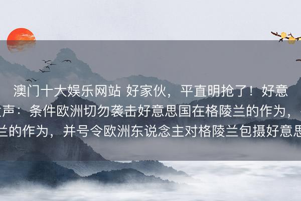 澳门十大娱乐网站 好家伙,平直明抢了!好意思国财长贝森特再次发声:条件欧洲切勿袭击好意思国在格陵兰的作为,并号令欧洲东说念主对格陵兰包摄好意思国捏怒放作风