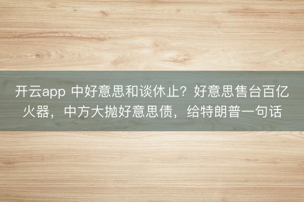 开云app 中好意思和谈休止?好意思售台百亿火器,中方大抛好意思债,给特朗普一句话