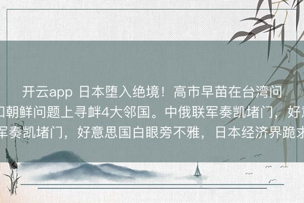 开云app 日本堕入绝境!高市早苗在台湾问题、朔方四岛、独岛和朝鲜问题上寻衅4大邻国。中俄联军奏凯堵门,好意思国白眼旁不雅,日本经济界跪求中国放过