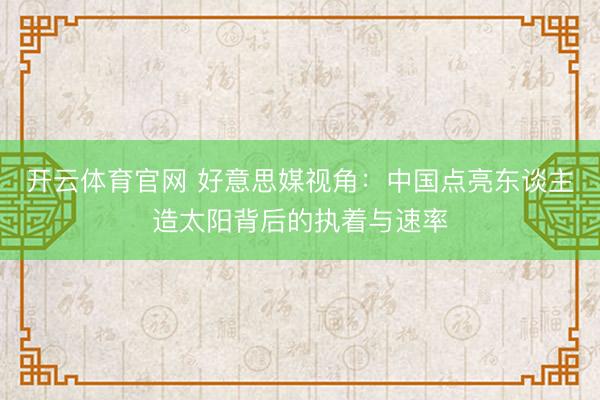 开云体育官网 好意思媒视角:中国点亮东谈主造太阳背后的执着与速率