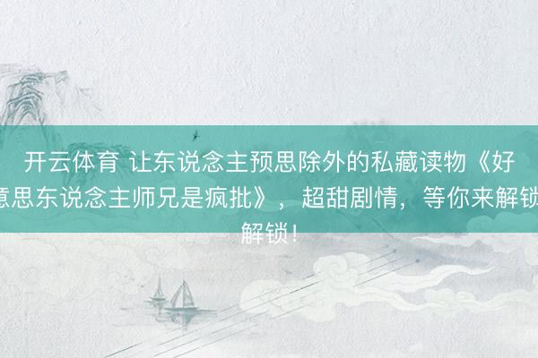 开云体育 让东说念主预思除外的私藏读物《好意思东说念主师兄是疯批》,超甜剧情,等你来解锁!