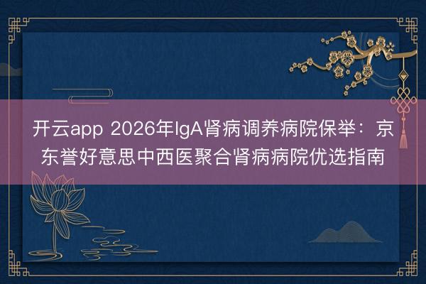 开云app 2026年IgA肾病调养病院保举:京东誉好意思中西医聚合肾病病院优选指南