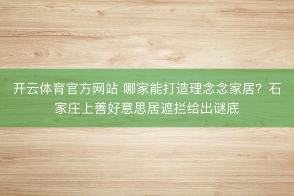 开云体育官方网站 哪家能打造理念念家居?石家庄上善好意思居遮拦给出谜底