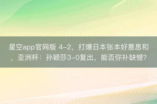 星空app官网版 4-2,打爆日本张本好意思和,亚洲杯:孙颖莎3-0复出,能否弥补缺憾?