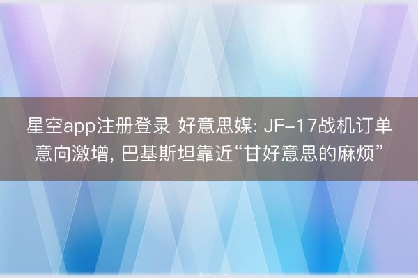星空app注册登录 好意思媒: JF-17战机订单意向激增, 巴基斯坦靠近“甘好意思的麻烦”
