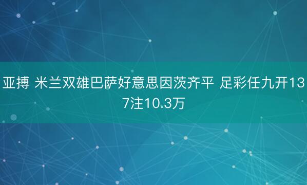 亚搏 米兰双雄巴萨好意思因茨齐平 足彩任九开137注10.3万