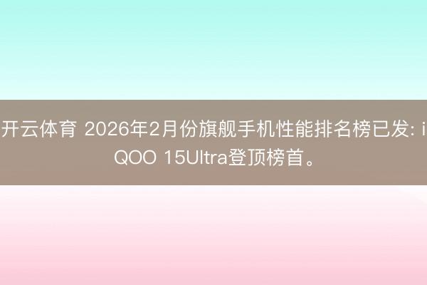 开云体育 2026年2月份旗舰手机性能排名榜已发: iQOO 15Ultra登顶榜首。