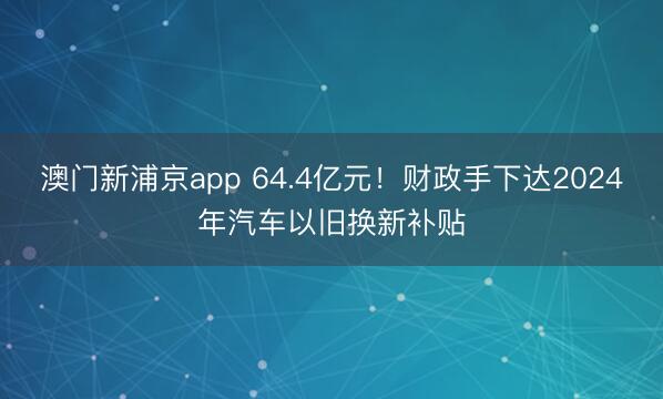 澳门新浦京app 64.4亿元!财政手下达2024年汽车以旧换新补贴