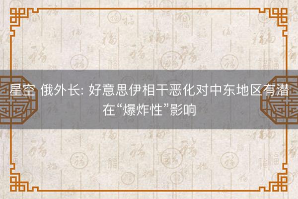 星空 俄外长: 好意思伊相干恶化对中东地区有潜在“爆炸性”影响