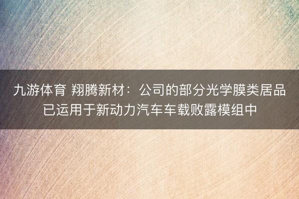 九游体育 翔腾新材:公司的部分光学膜类居品已运用于新动力汽车车载败露模组中
