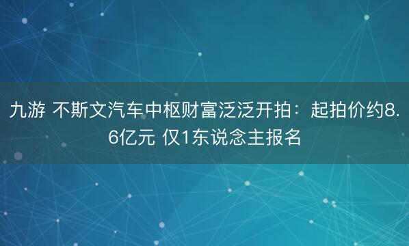 九游 不斯文汽车中枢财富泛泛开拍:起拍价约8.6亿元 仅1东说念主报名