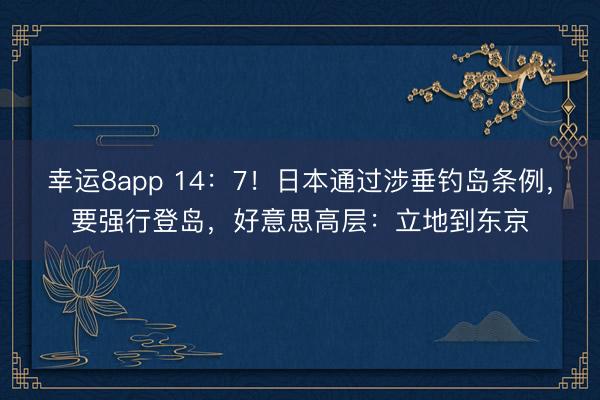 幸运8app 14:7!日本通过涉垂钓岛条例,要强行登岛,好意思高层:立地到东京