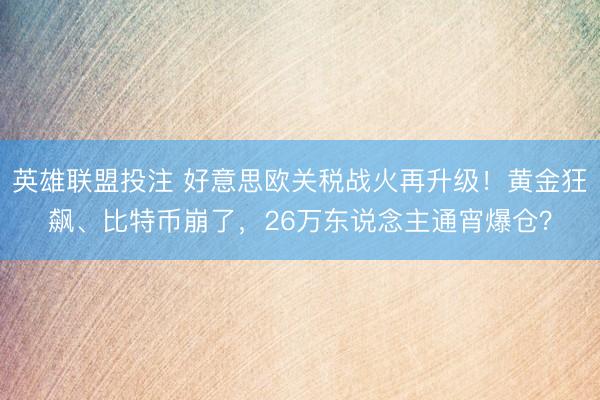 英雄联盟投注 好意思欧关税战火再升级!黄金狂飙、比特币崩了,26万东说念主通宵爆仓?
