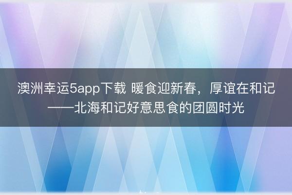 澳洲幸运5app下载 暖食迎新春,厚谊在和记——北海和记好意思食的团圆时光