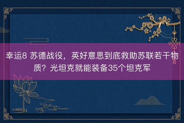 幸运8 苏德战役,英好意思到底救助苏联若干物质?光坦克就能装备35个坦克军