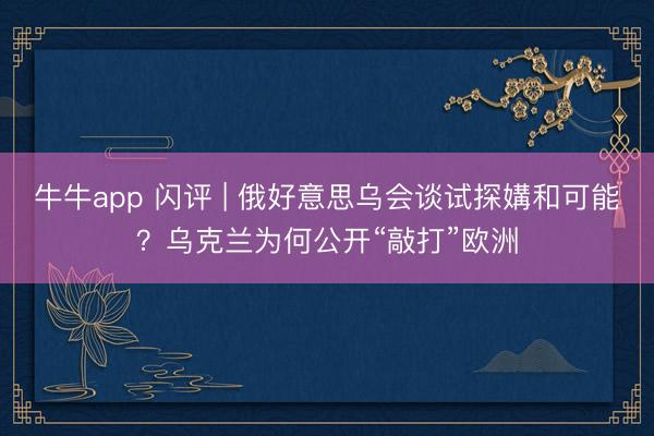 - 牛牛app 闪评 | 俄好意思乌会谈试探媾和可能?乌克兰为何公开“敲打”欧洲