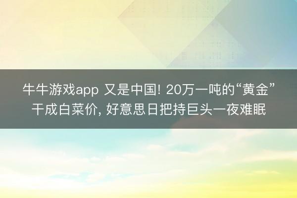 - 牛牛游戏app 又是中国! 20万一吨的“黄金”干成白菜价, 好意思日把持巨头一夜难眠