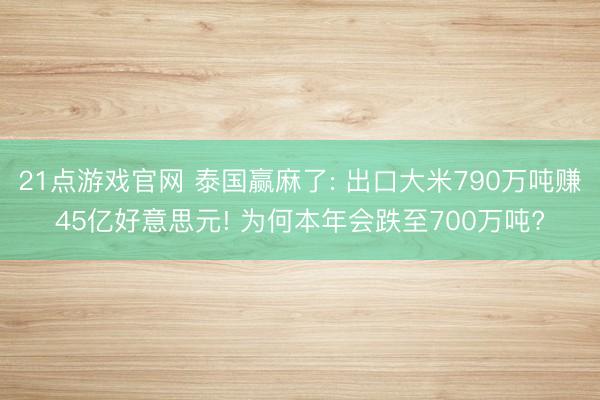 - 21点游戏官网 泰国赢麻了: 出口大米790万吨赚45亿好意思元! 为何本年会跌至700万吨?