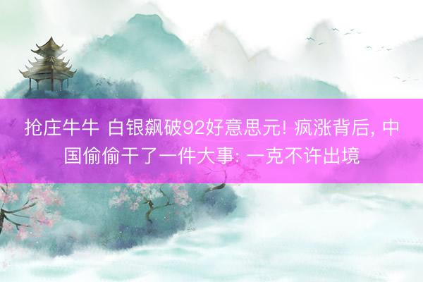 抢庄牛牛 白银飙破92好意思元! 疯涨背后, 中国偷偷干了一件大事: 一克不许出境