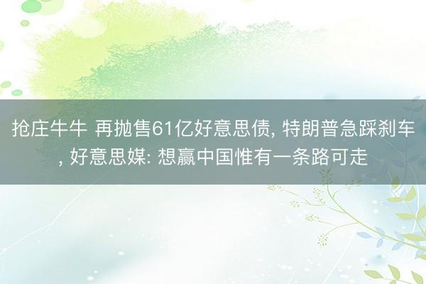 - 抢庄牛牛 再抛售61亿好意思债, 特朗普急踩刹车, 好意思媒: 想赢中国惟有一条路可走