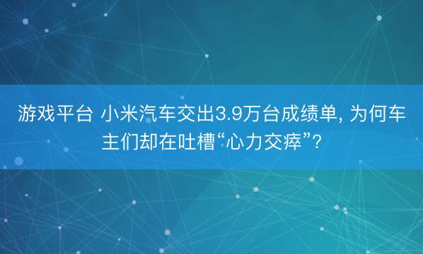 游戏平台 小米汽车交出3.9万台成绩单, 为何车主们却在吐槽“心力交瘁”?