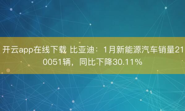 开云app在线下载 比亚迪:1月新能源汽车销量210051辆,同比下降30.11%