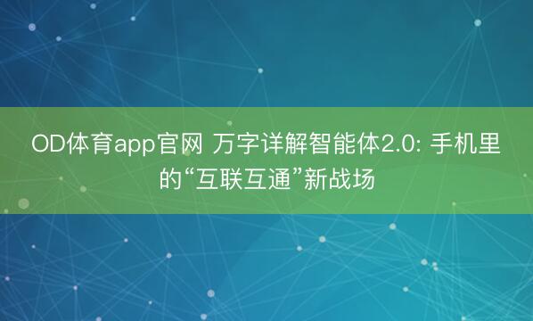 OD体育app官网 万字详解智能体2.0: 手机里的“互联互通”新战场