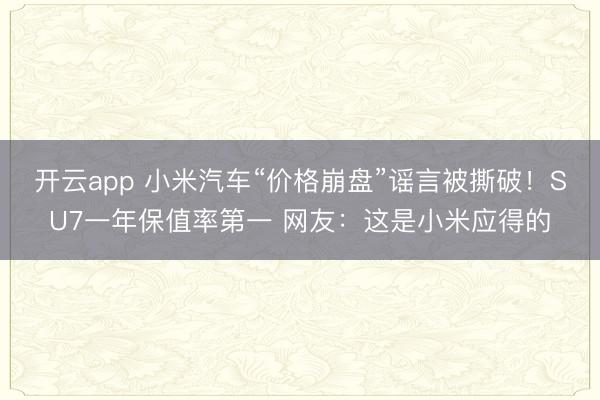 开云app 小米汽车“价格崩盘”谣言被撕破!SU7一年保值率第一 网友:这是小米应得的