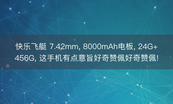 快乐飞艇 7.42mm, 8000mAh电板, 24G+456G, 这手机有点意旨好奇赞佩好奇赞佩!