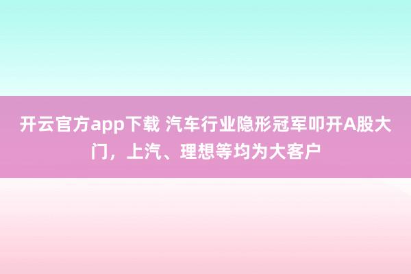 开云官方app下载 汽车行业隐形冠军叩开A股大门,上汽、理想等均为大客户