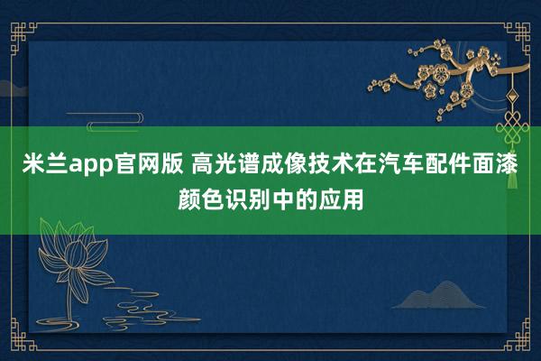 米兰app官网版 高光谱成像技术在汽车配件面漆颜色识别中的应用