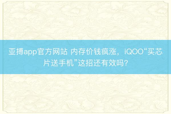亚搏app官方网站 内存价钱疯涨,iQOO“买芯片送手机”这招还有效吗?