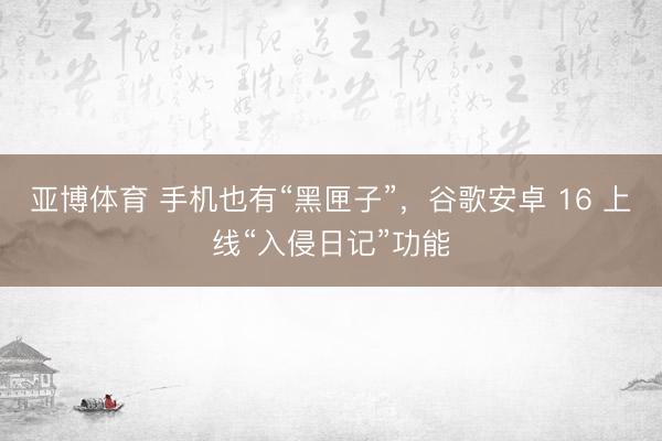 亚博体育 手机也有“黑匣子”,谷歌安卓 16 上线“入侵日记”功能