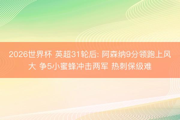 2026世界杯 英超31轮后: 阿森纳9分领跑上风大 争5小蜜蜂冲击两军 热刺保级难