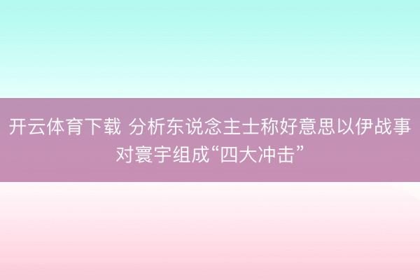 开云体育下载 国际不雅察|“不时扩大的危急旋涡”——好意思以伊战事对天下组成“四大冲击”