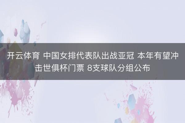 开云体育 中国女排代表队出战亚冠 本年有望冲击世俱杯门票 8支球队分组公布