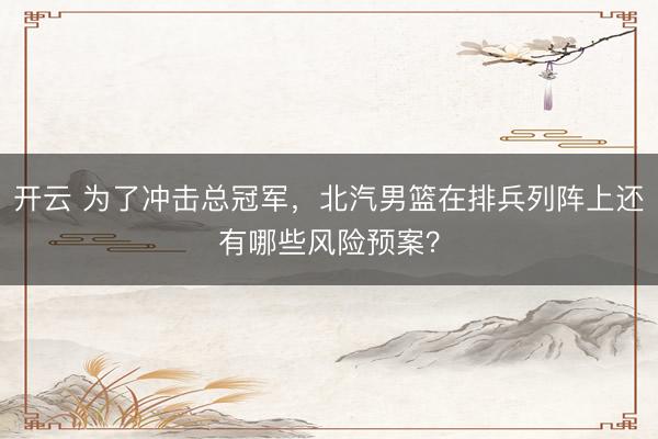 开云 为了冲击总冠军,北汽男篮在排兵列阵上还有哪些风险预案?