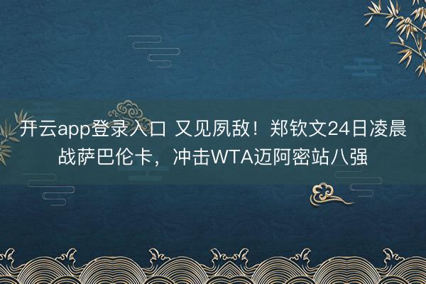 开云app登录入口 又见夙敌!郑钦文24日凌晨战萨巴伦卡,冲击WTA迈阿密站八强