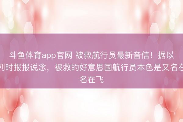 斗鱼体育app官网 被救航行员最新音信!据以色列时报报说念,被救的好意思国航行员本色是又名在飞