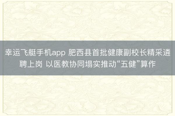 幸运飞艇手机app 肥西县首批健康副校长精采遴聘上岗 以医教协同塌实推动“五健”算作